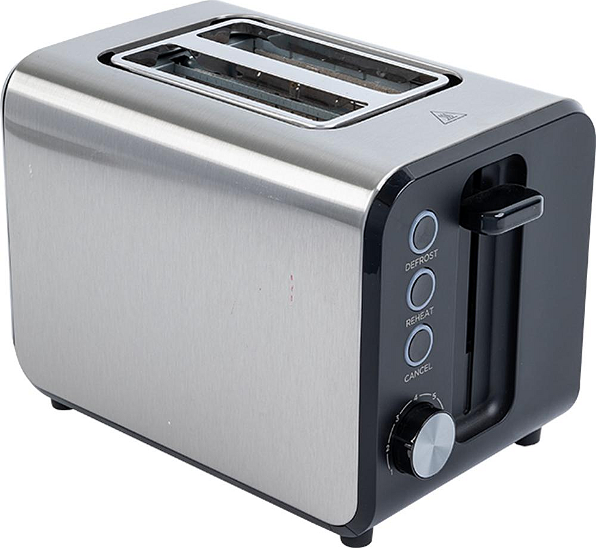 Topinkovač Midea se zásobníkem na drobky, funkcí přerušení, rozmrazování a ohřívání a indikátorem provozu.