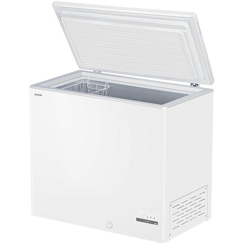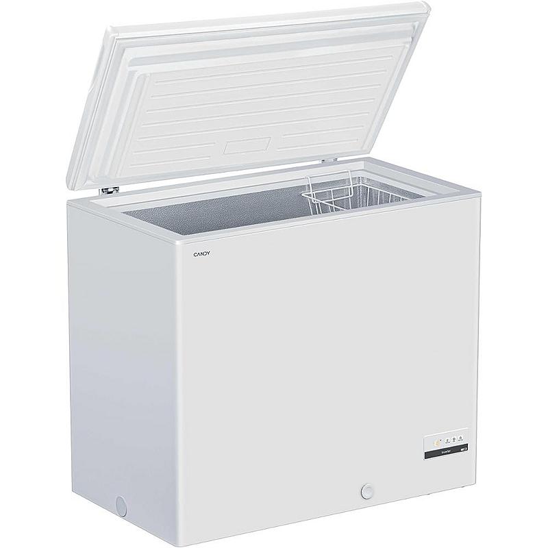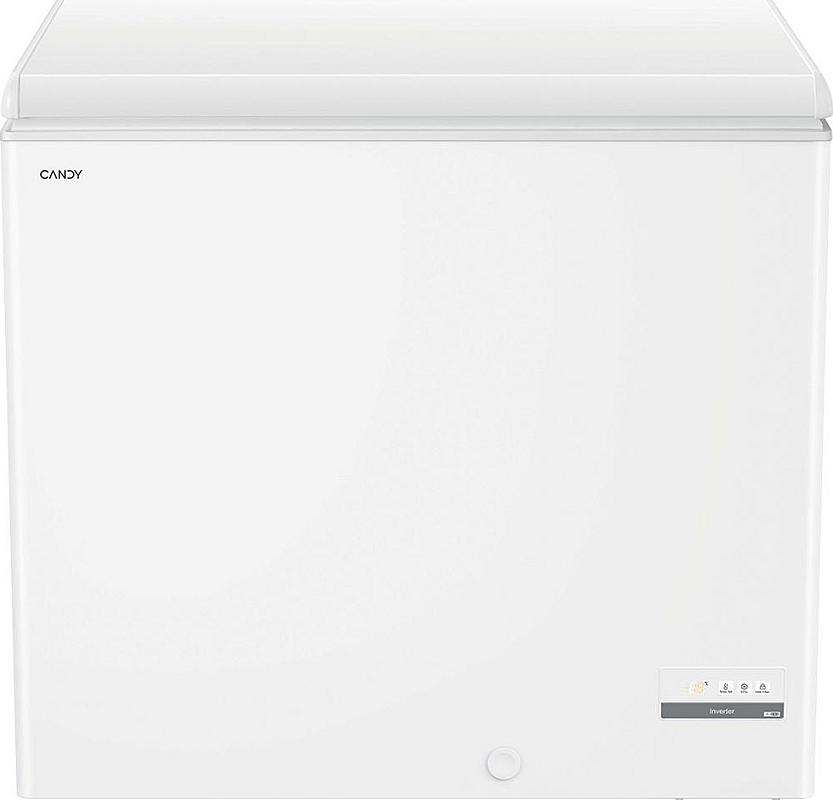 Pultový mrazák Candy s invertorovým kompresorem, elektronickým ovládáním a funkcí rychlého mrazení. Energetická třída C, celkový objem 196 l a možnost ovládání přes aplikaci.