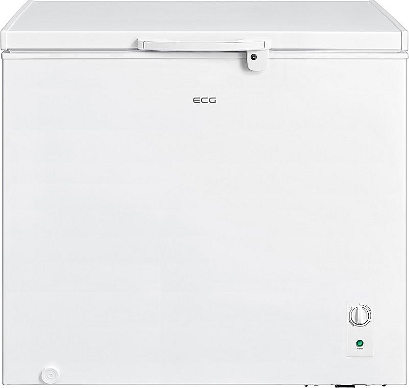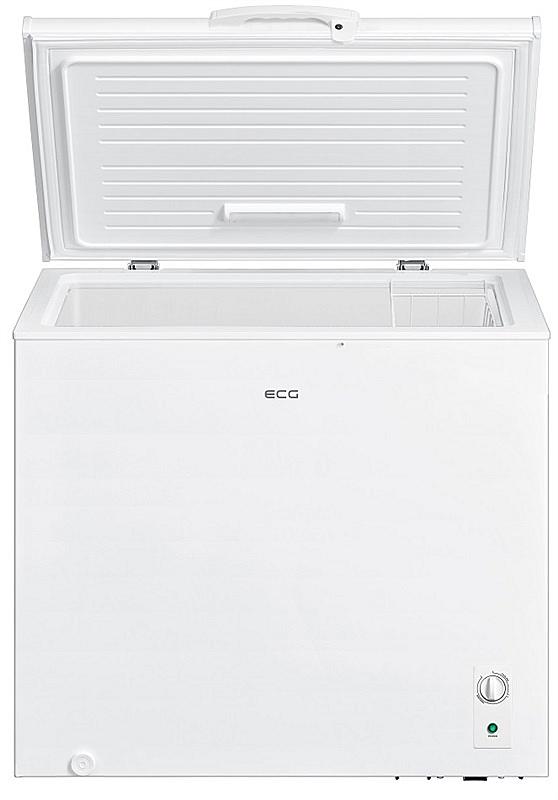 Pultový mrazák ECG s objemem 198 litrů, akumulační dobou 20 hodin a manuálním odmrazováním.