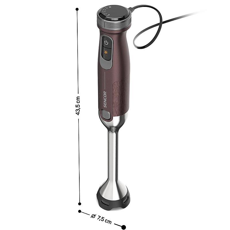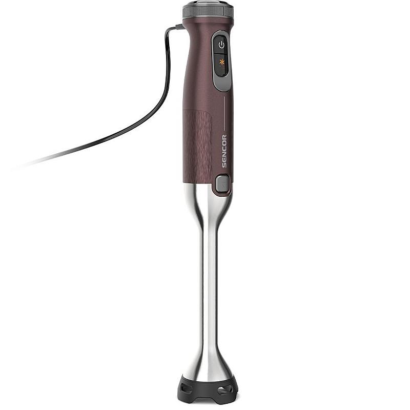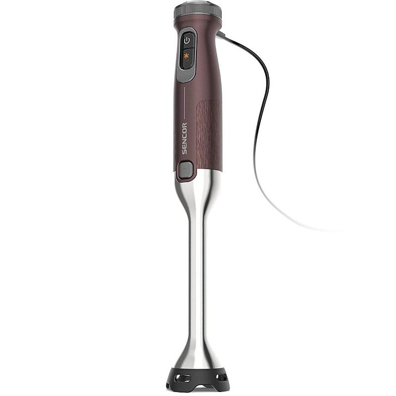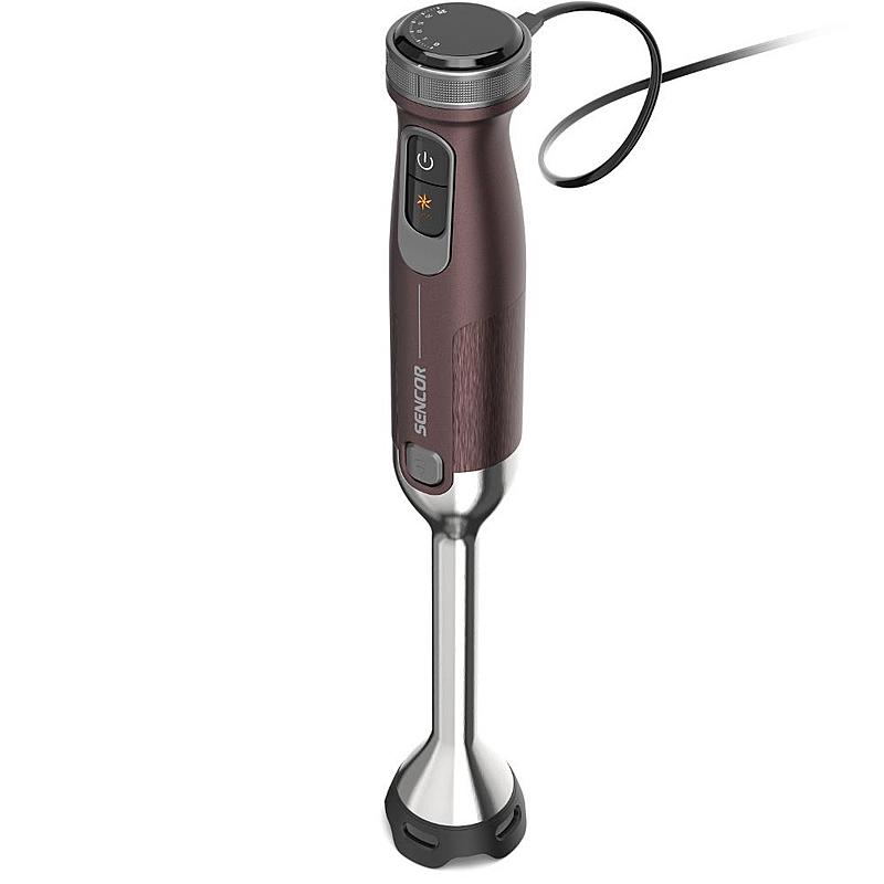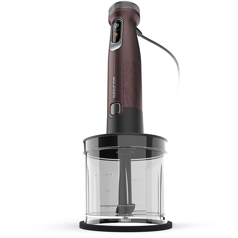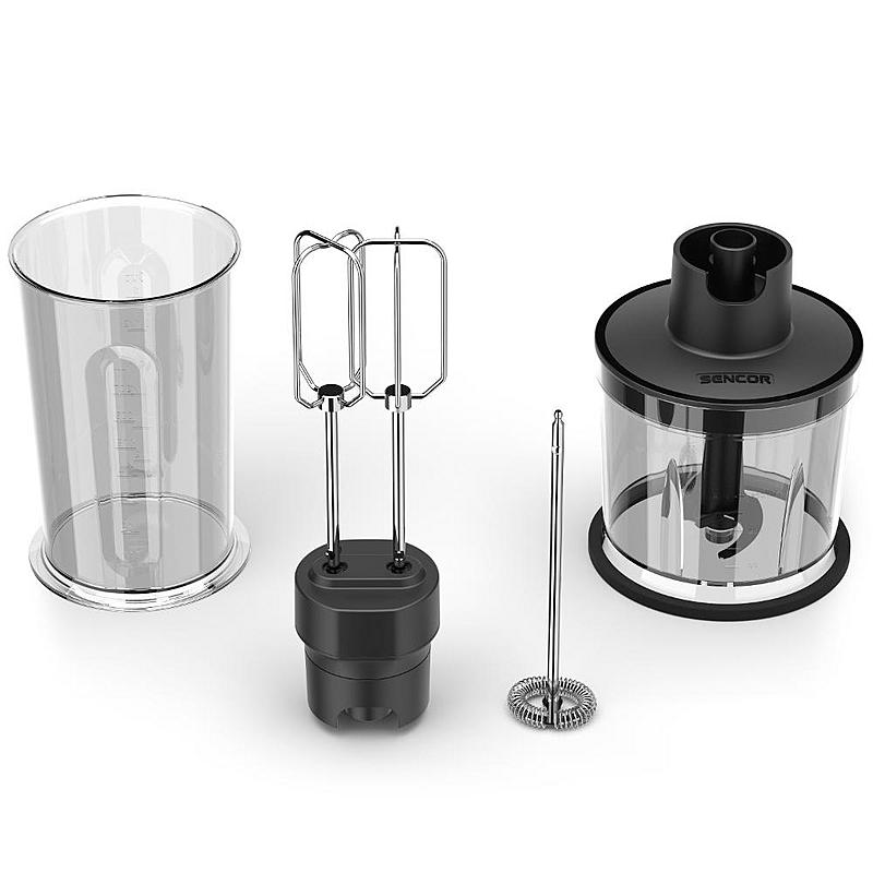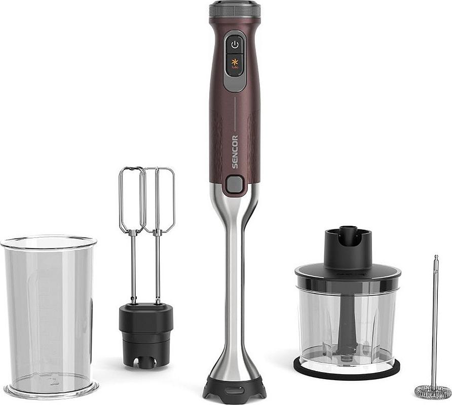 Tyčový mixér Sencor s výkonným 1500 W motorem, sekáčkem a dvojitou nerezovou metlou.