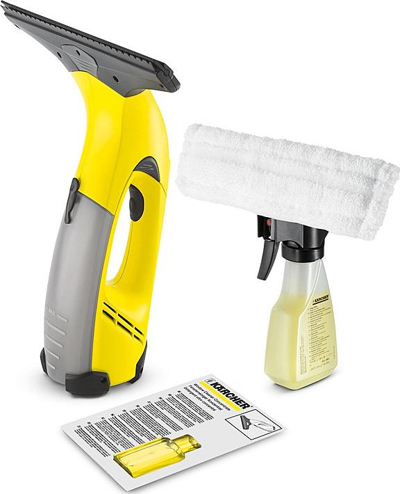 Okenní vysavač Kärcher se šířkou stěrky 28centimetrů a provozní dobou až 20 minut.