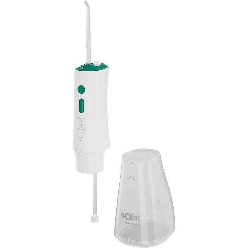 Ústní sprcha Solac s třemi režimy čištění, LED kontrolkou a objemem nádoby na vodu 320 ml.