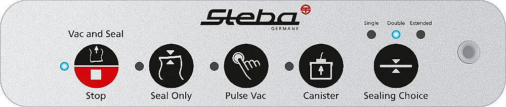 Vakuovačka Steba s odsáváním vzduchu, tlačítkem STOP a dvojitým svárem.