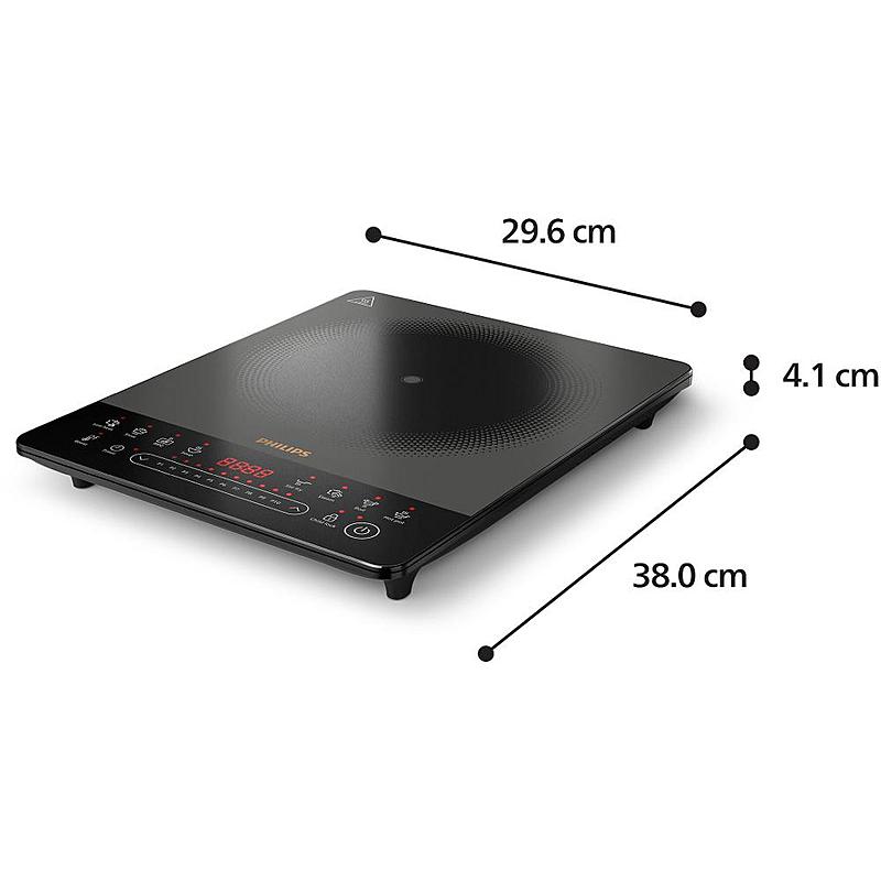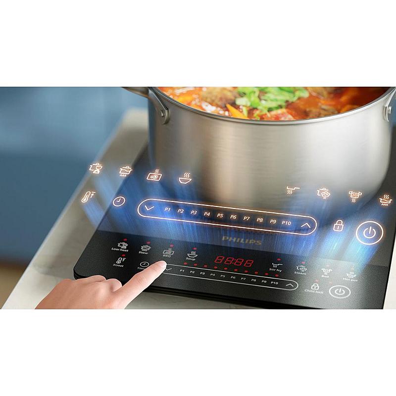 Indukční vařič Philips s 8 programy, dotykovým ovládáním a automatickým vypnutím.
