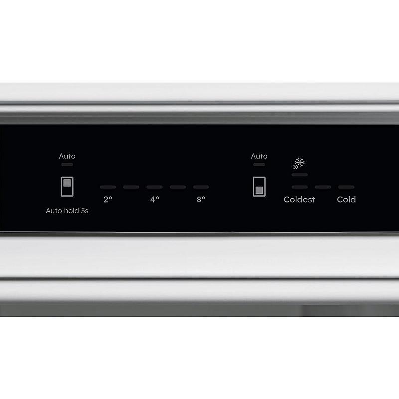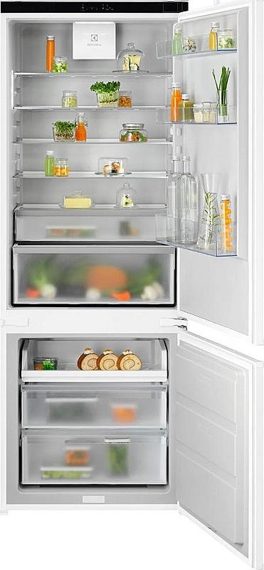 Vestavná kombinovaná lednice Electrolux s technologií NoFrost, funkcí rychlého mrazení a zaměnitelným otevíráním Celkový objem 375 l a dotykové ovládání.