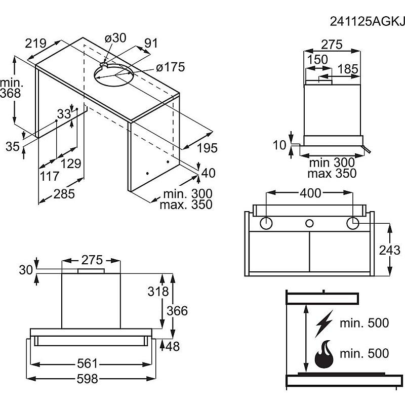 Vestavný odsavač par Electrolux se 3 rychlostmi, LED osvětlením a možností recirkulace.