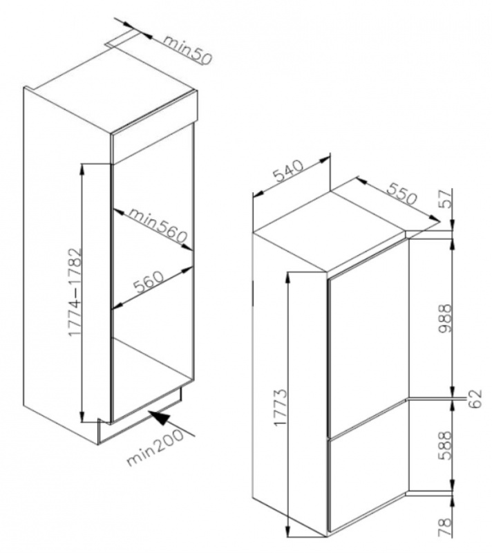 Vestavná kombinovaná lednice Amica v bílém provedení. Energetická třída A+, spotřeba 0,75 kWh/den, objem 260 l (190/70). Antibakteriální ochrana a automatické odmrazování...