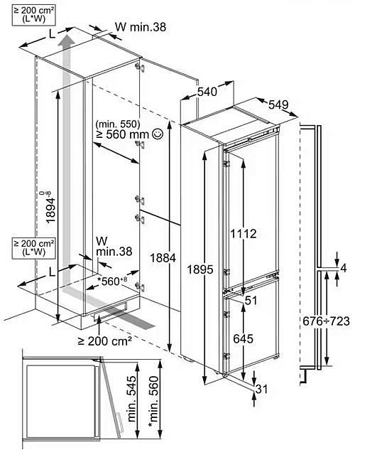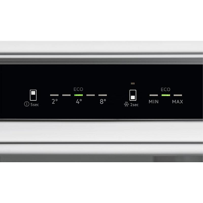Vestavná kombinovaná lednice Electrolux s NoFrost technologií, možností změny směru otevírání a funkcí rychlého mrazení. Celkový objem 269 l a dotykové ovládání.