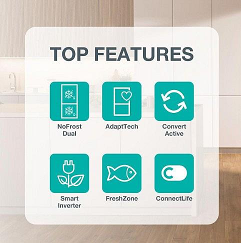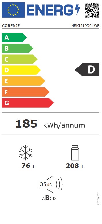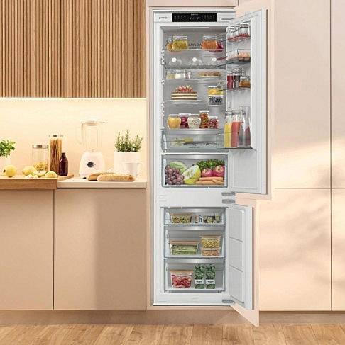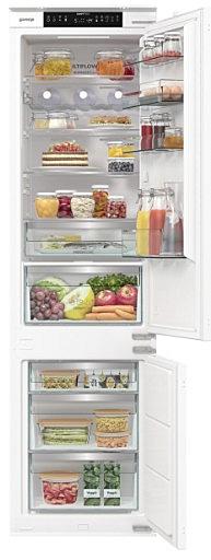 Beznámrazová kombinovaná lednice Gorenje s LED displejem, integrovanou WiFi a elektronickým ovládáním. Energetická třída D, celkový objem 284 l a funkce super mrazení a chlazení.