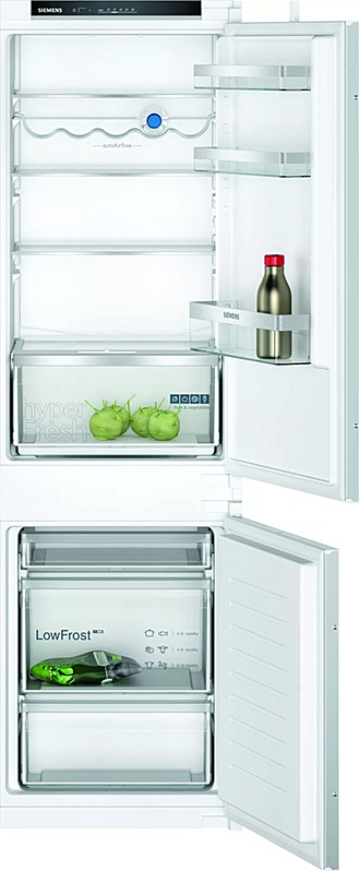 Vestavná kombinovaná chladnička Siemens s LowFrost technologií, LED osvětlením a celkovým objemem 267 l.