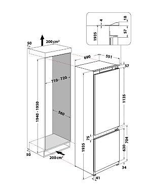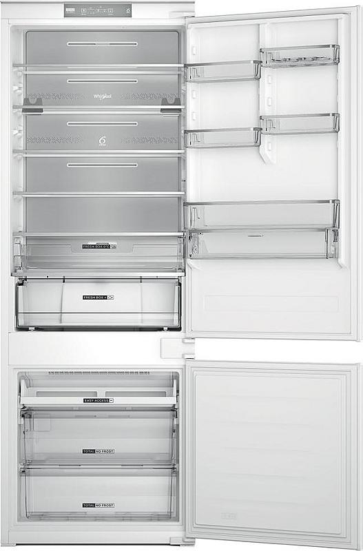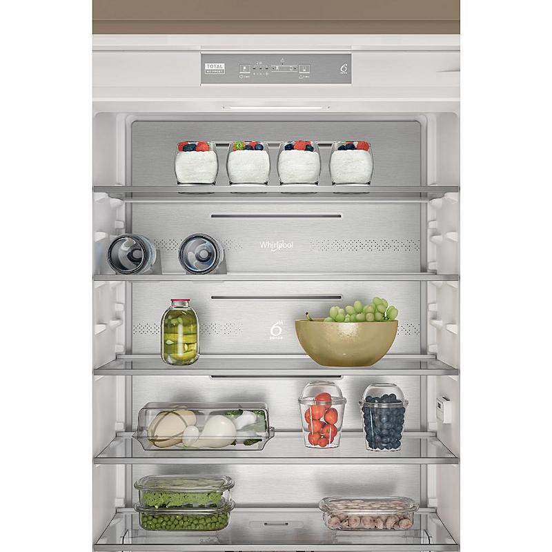 Vestavná lednice Whirlpool s technologií NoFrost, funkcí rychlého chlazení a mrazení a ventilátorem pro rovnoměrné chlazení.