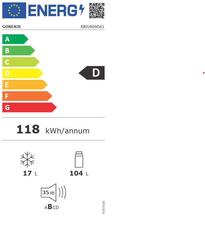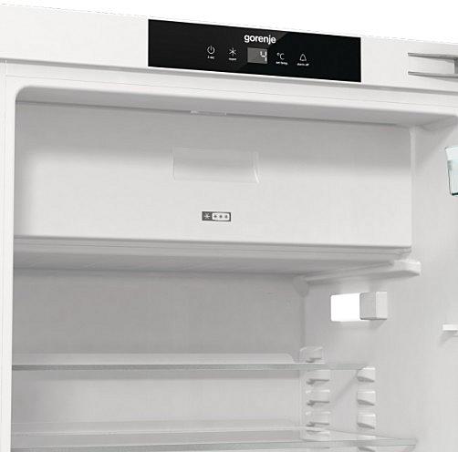 Vestavná lednice Gorenje s mrazícím boxem, elektronickým ovládáním, invertorovým kompresorem a LED displejem. Automatické odmrazování a celkový objem 121 l.