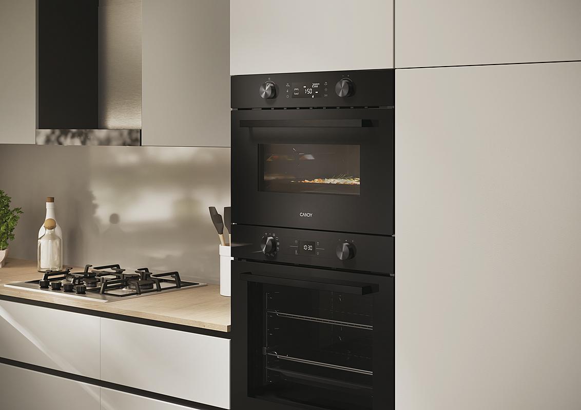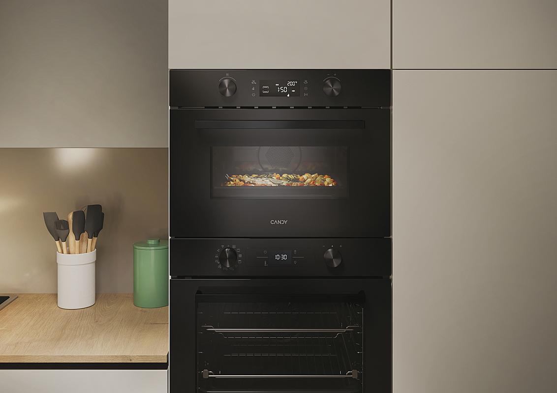 Kombinovaná vestavná mikrovlnná trouba Candy s 13 automatickými programy, dětským zámkem a 5 úrovněmi výkonu. Objem 44 l a gril.