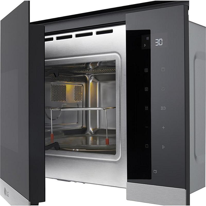 Vestavná mikrovlnná trouba LG s LED osvětlením, objemem 25 l a grilem. Automatické programy a rozmrazování.