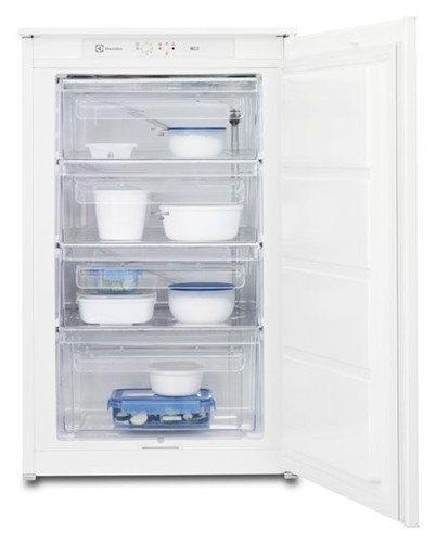 Vestavný šuplíkový mrazák Electrolux v bílém provedení. Energetická třída A+, výška 87 cm, objem 94 l a spotřeba 0,54 kWh/den. Varovná signalizace a zaměnitelné otvírání...