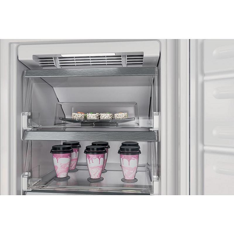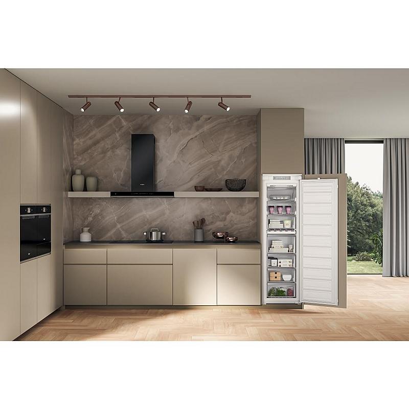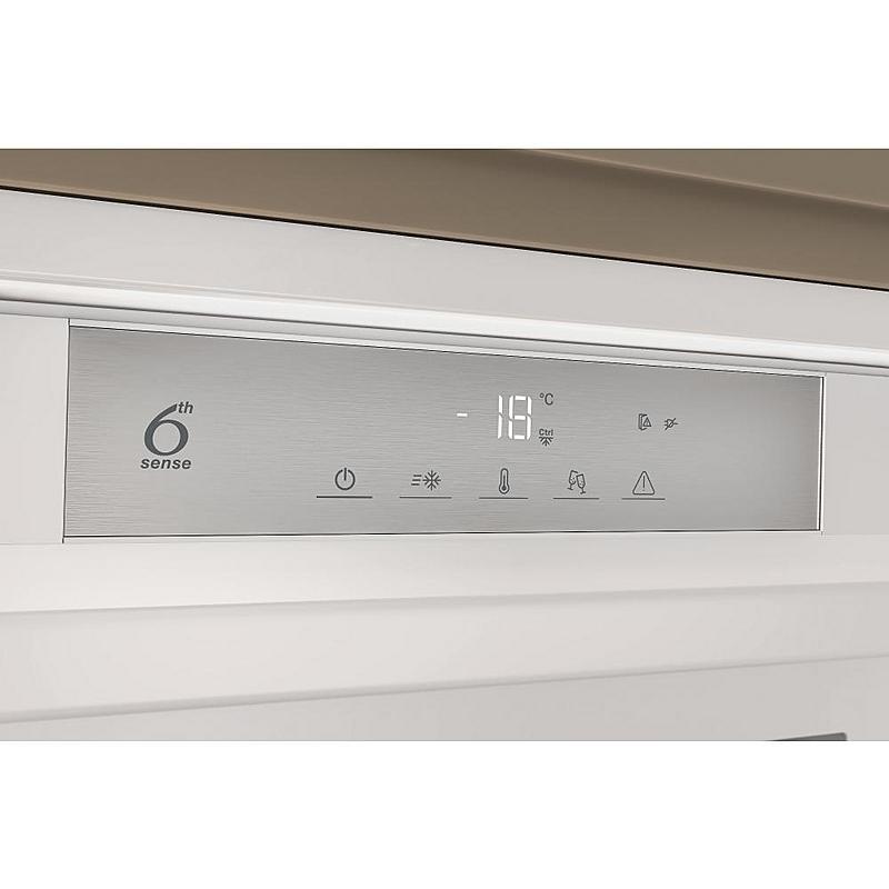 Vestavný skříňový mrazák Whirlpool s invertorovým motorem, technologií NoFrost a funkcí rychlého mrazení. Objem 209 l a zaměnitelné otevírání.