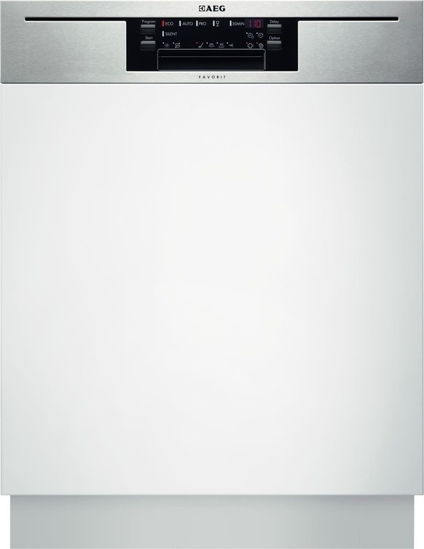 Vestavná myčka AEG s digitálním displejem, funkcí odloženého startu a 6 programy. Kapacita 15 jídelních souprav a energetická třída A++.