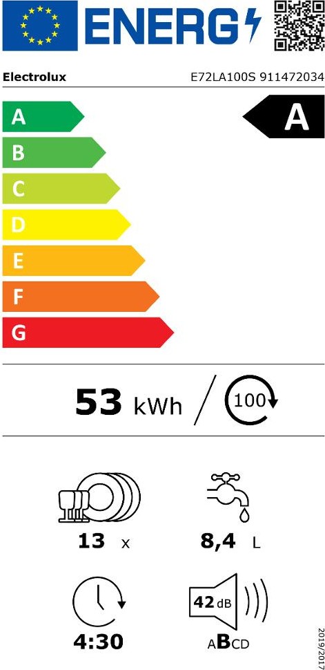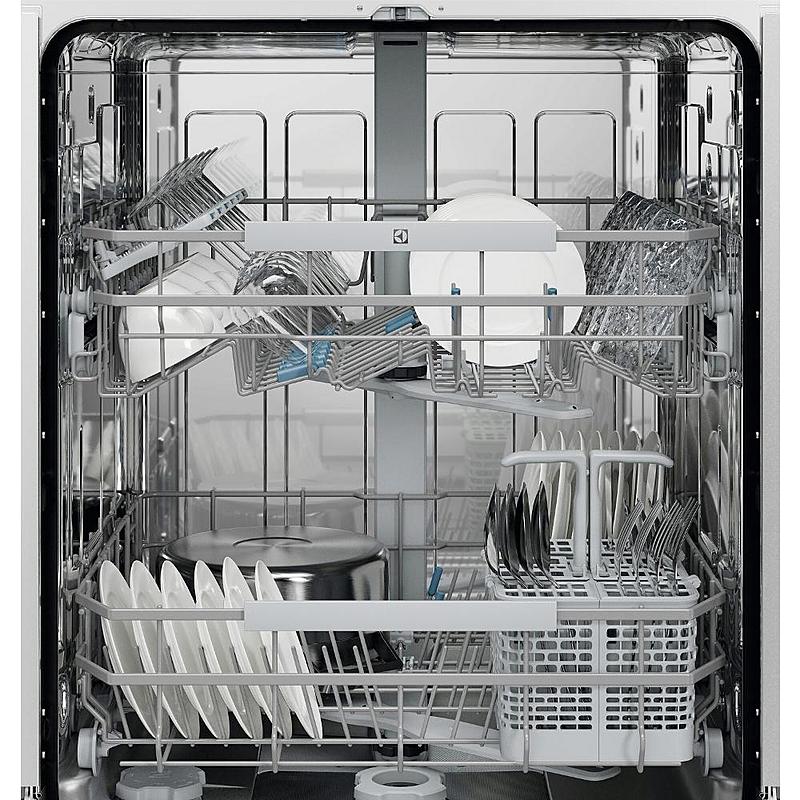 Plně integrovaná myčka Electrolux s 8 programy, vodním senzorem a ochranou proti přetečení. Energetická třída A a kapacita 13 sad nádobí.