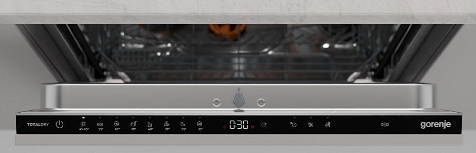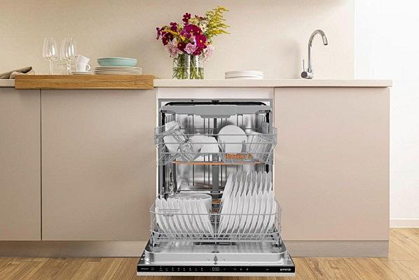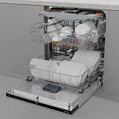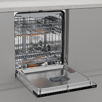 Plně integrovaná myčka Gorenje s 8 programy, AquaStopem a možností ovládání přes aplikaci. Energetická třída D, kapacita 16 sad nádobí a odložený start.