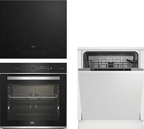 Vestavný set Beko s multifunkční troubou, indukční varnou deskou a plně integrovanou myčkou.