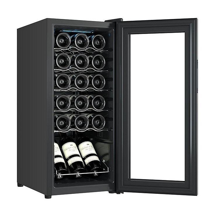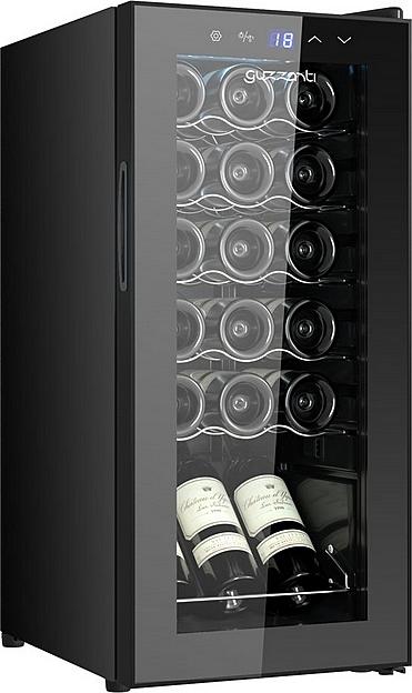 Vinotéka Guzzanti s kapacitou 18 lahví, vnitřním LED osvětlením a digitálním termostatem.