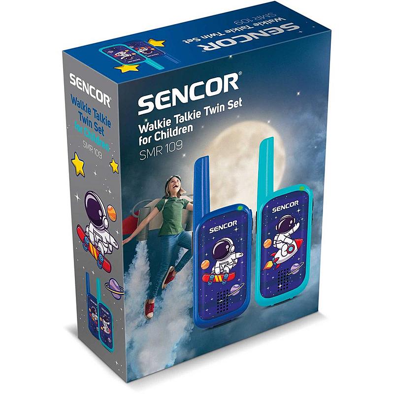 Vysílačky Sencor s dosahem 0,5 km, 1 základním kanálem a frekvenčním pásmem 446 MHz.