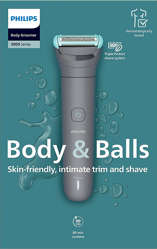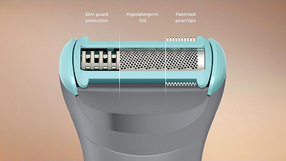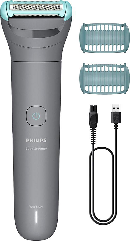 Zastřihovač chloupků Philips s dobou provozu až 80 minut, samoostřicími celokovovými břity a dvěma výměnnými nástavci.