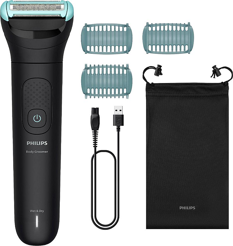 Zastřihovač těla Philips s třemi nástavci, aku napájením a možností mokrého holení.