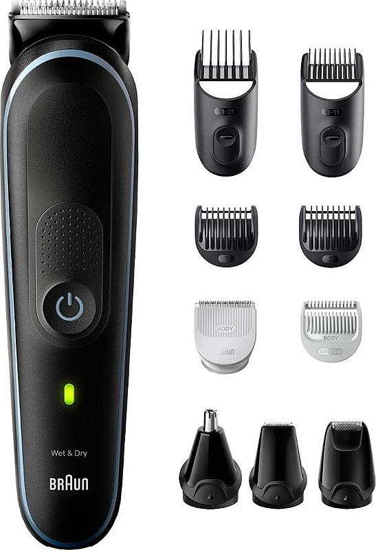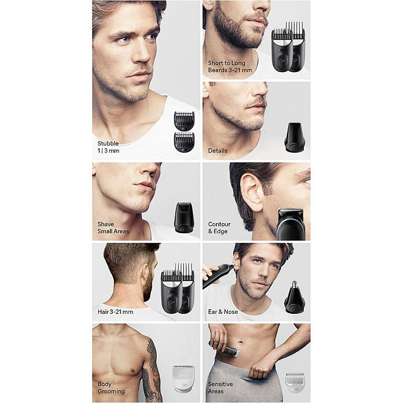 Multifunkční zastřihovač Braun vhodný pro péči o vousy, vlasy, detaily a pro úpravu těla.