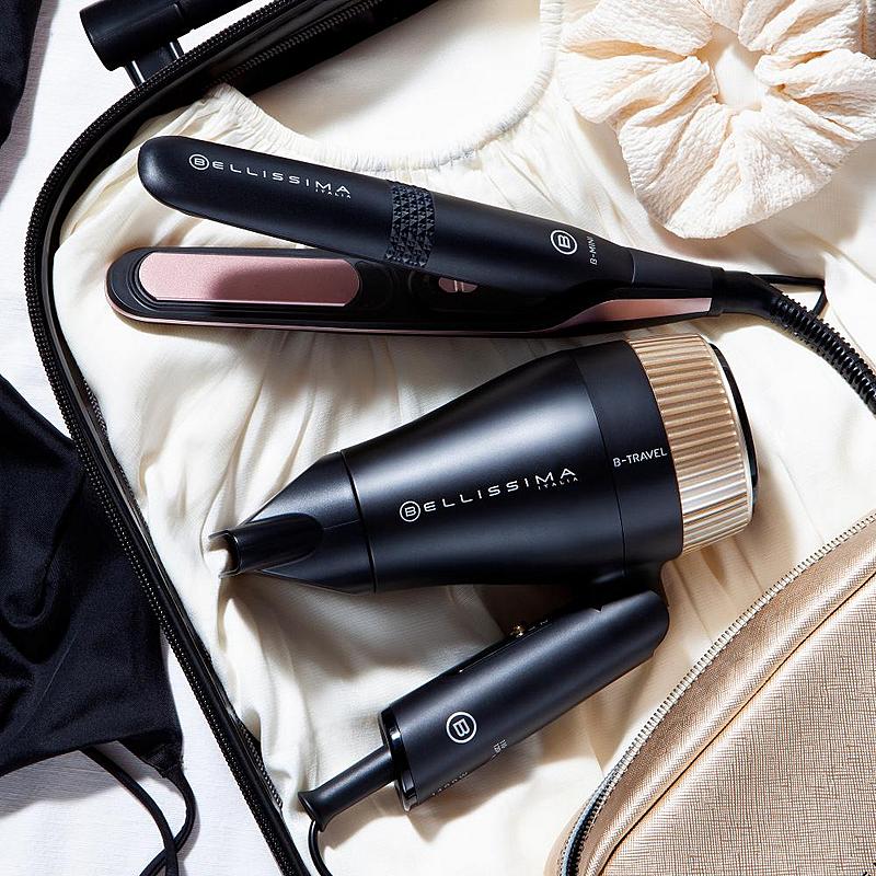 Mini žehlička na vlasy Bellissima s keramickým povlakem a automatickým multi-napětím. Ideální pro styling krátkých vlasů a ofiny.